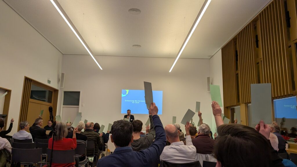 Die Frankfurter Bürgerenergiegenossenschaft (FraBeG) hat einen weiteren wichtigen Schritt in ihrer Entwicklung genommen. Bei der 1. ordentlichen Generalversammlung am 20. März 2025 in Frankfurt-Riedberg wurden Vorstand und Aufsichtsrat einstimmig bei jeweils nur wenigen Enthaltungen von den Mitgliedern der FraBeG entlastet.
